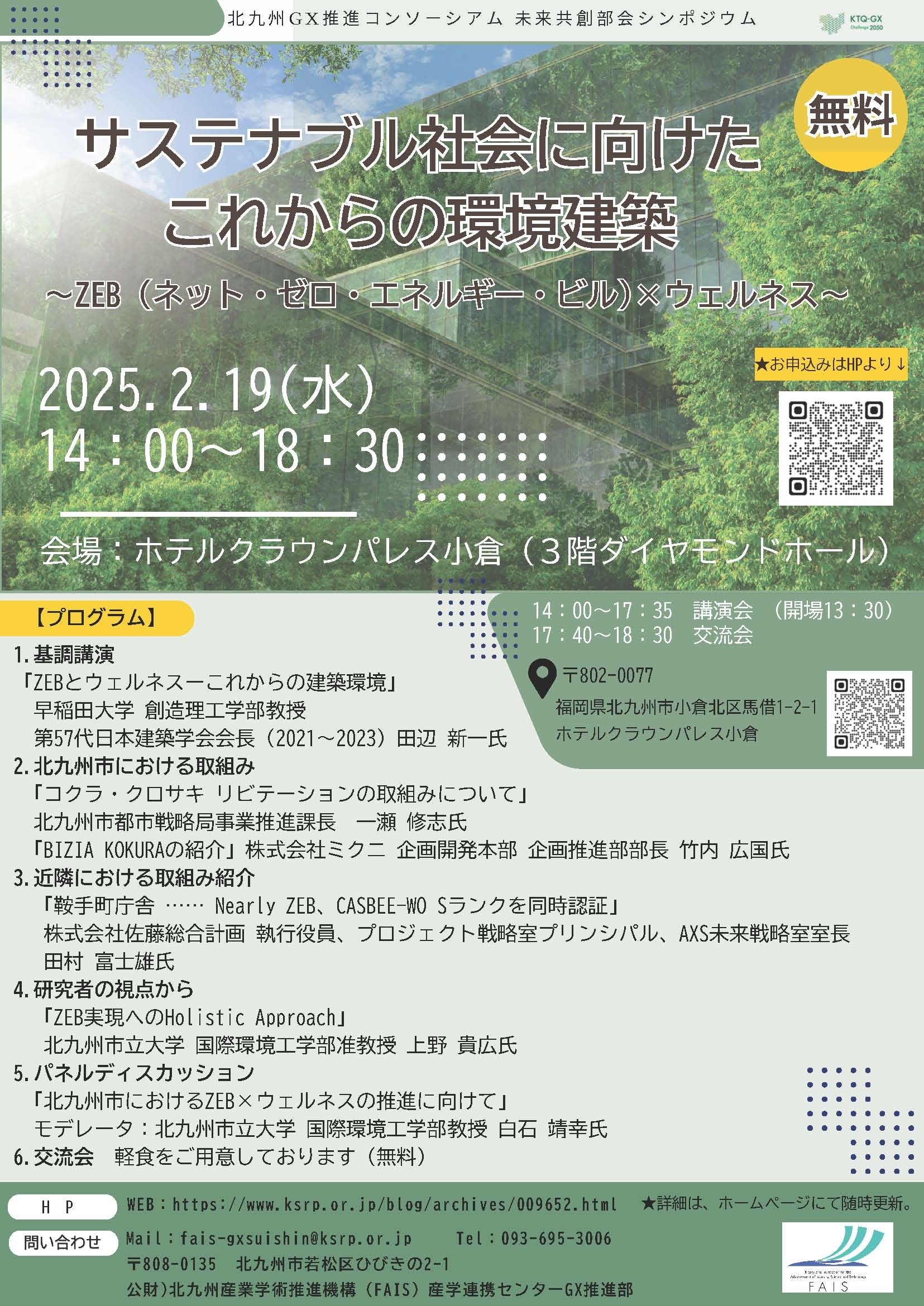 サステナブルな社会構築に向けて、建築物におけるゼロ・エネルギー化及び屋内環境の健康・快適化を推進するため、北九州地域における最先端の環境建築の普及促進、地場企業等による先駆的な取り組みへの機運を醸成する事が重要です。