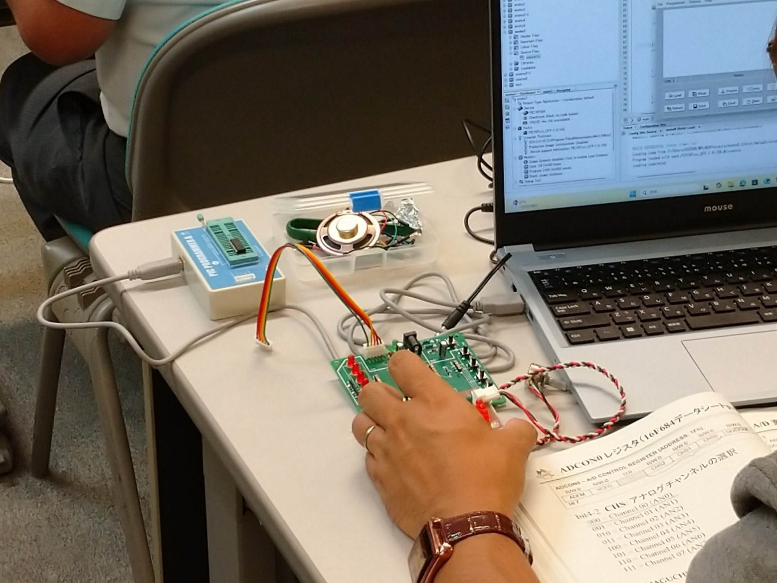 座学と実習を組み合わせた内容になっていますので、1日でマイコンのプログラミングの基礎を