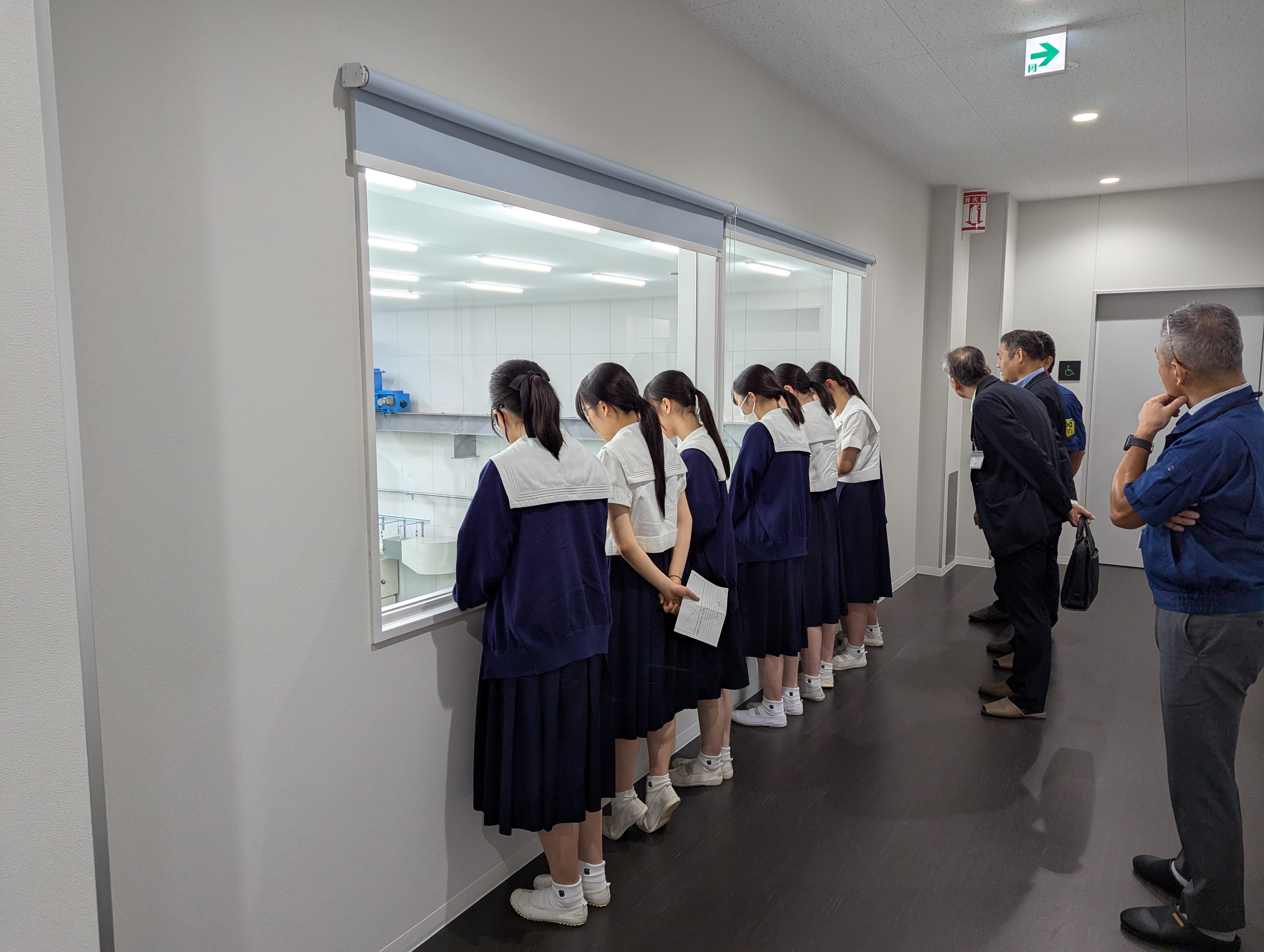 高校生は製品検査をする極小のトランジスターを興味深く見たり、工場見学では作業員がどんな装置を製造しているかといった質問を積極的にしていました。