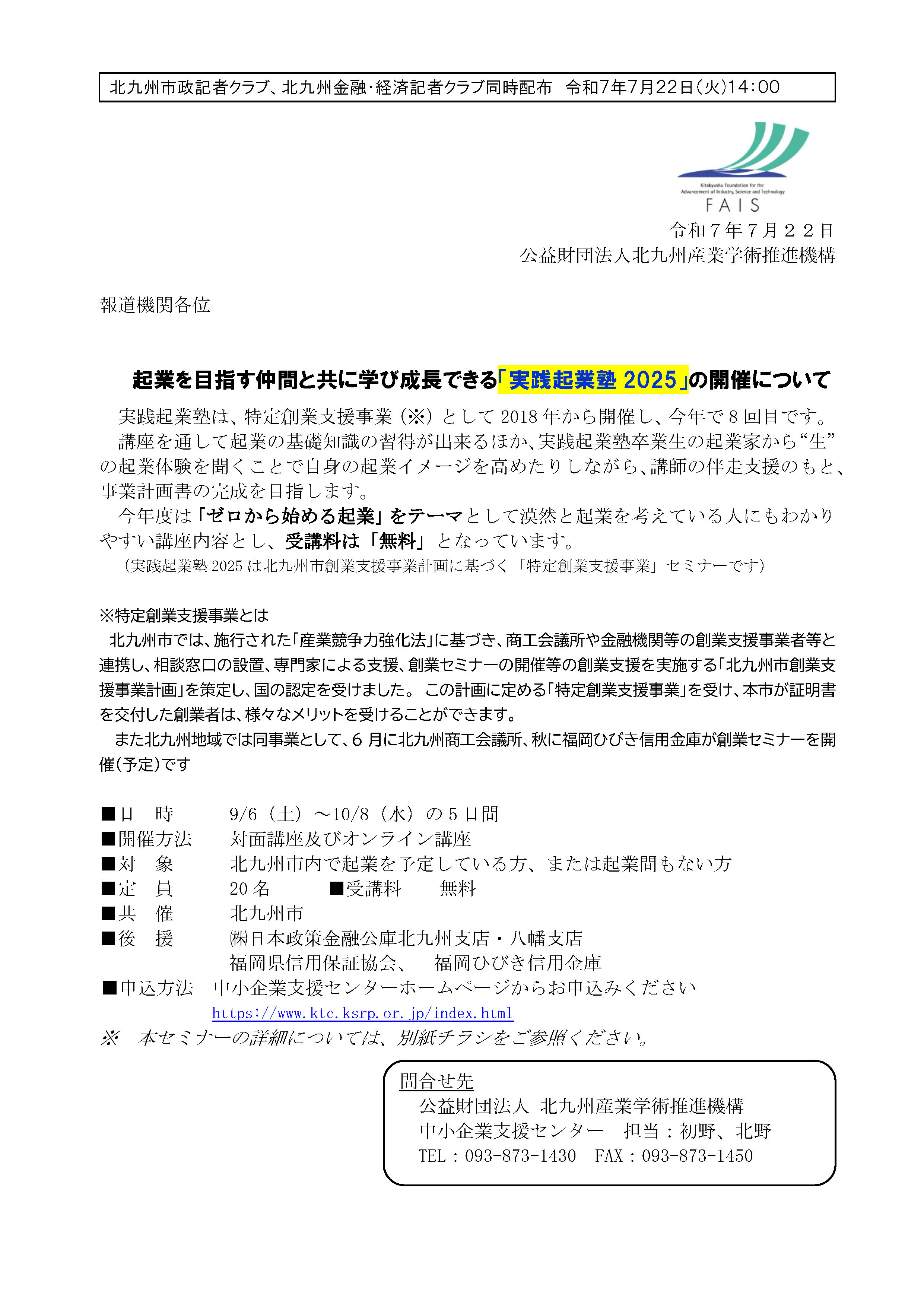 起業を目指す仲間と共に学び成長できる「実践起業塾2025」の開催について