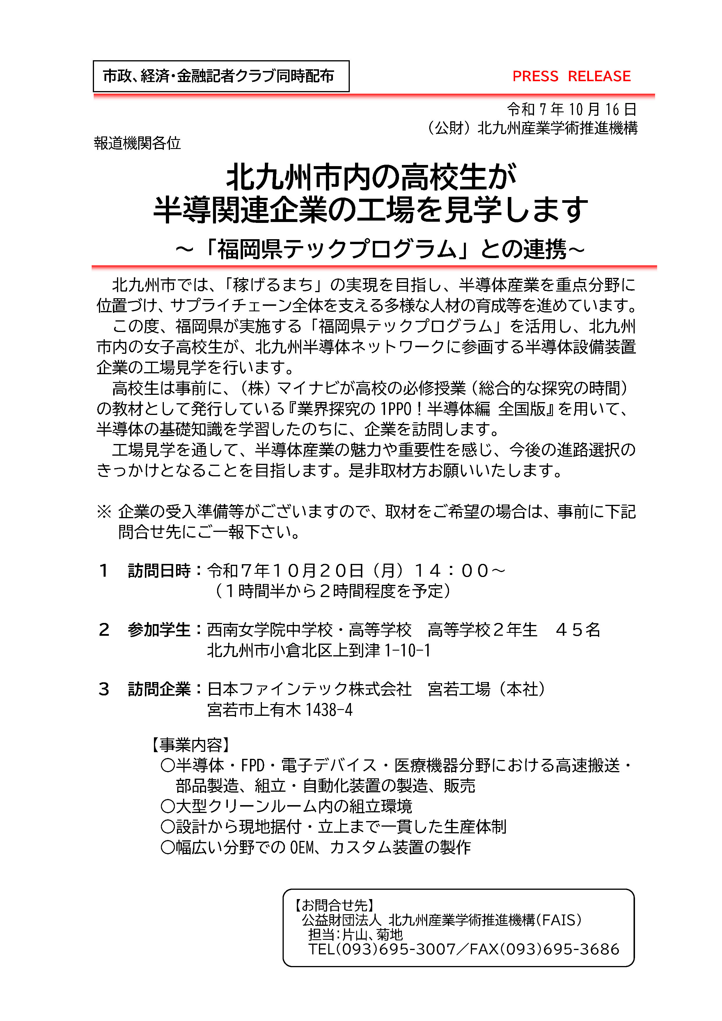 北九州市内の高校生が半導体関連企業の工場を見学します