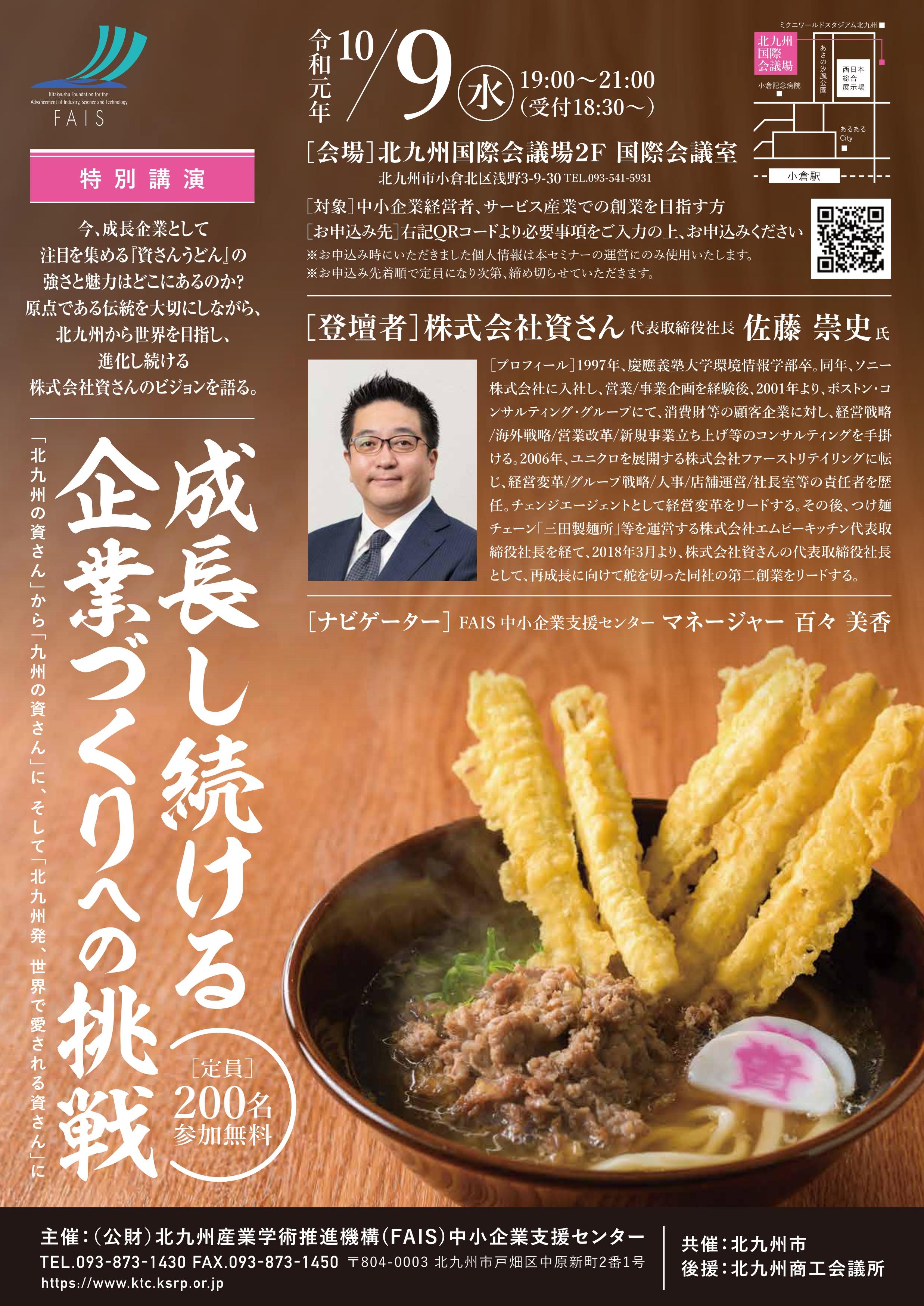 株式会社資さん代表取締役社長 佐藤 崇史 氏にご講演いただきます。
