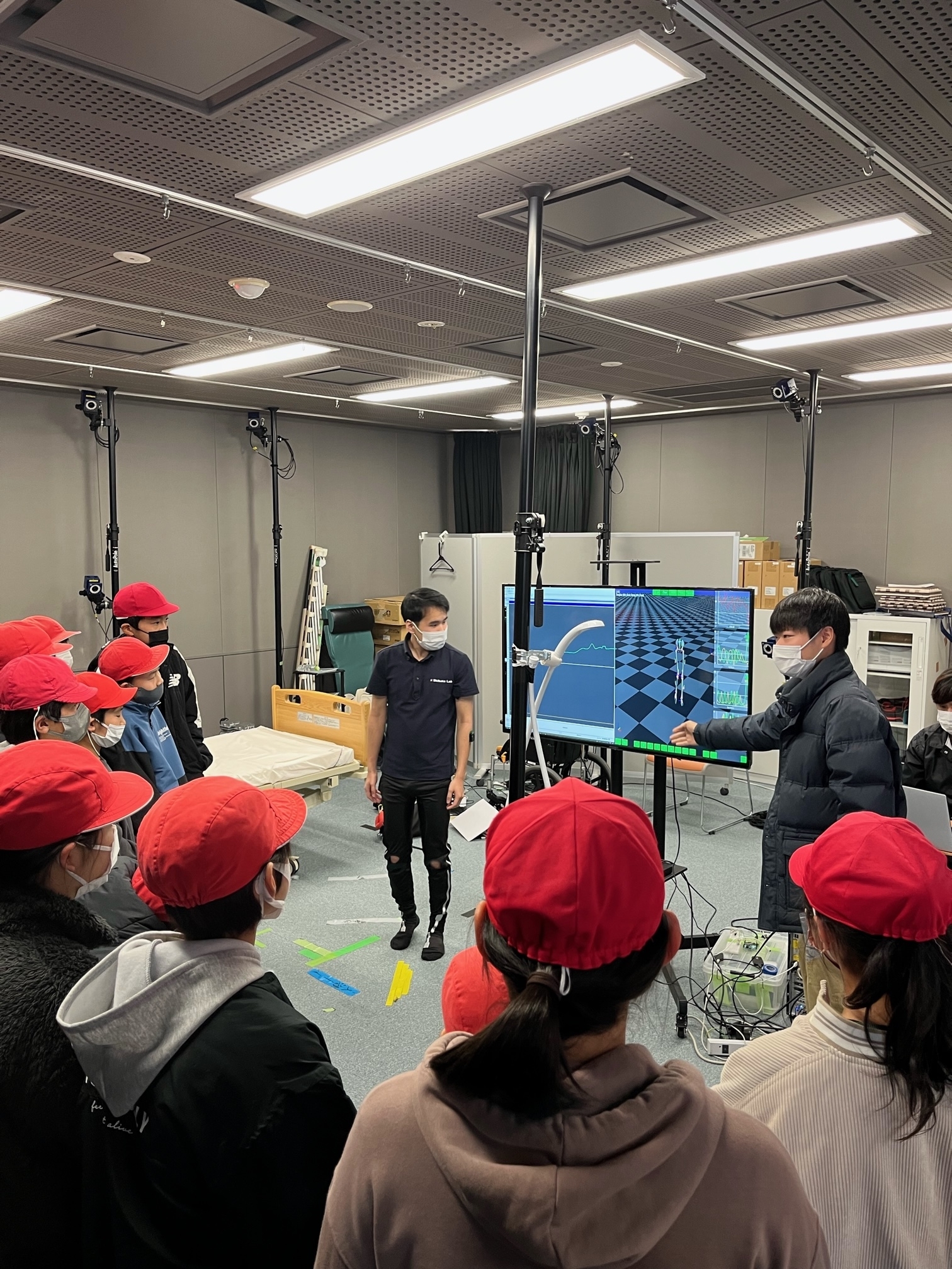 九州工業大学若松キャンパスとひびきの小学校が連携し、小学校6年生(約190名)の課外授業として4日間に分けて大学見学会を実施しました。見学会では世界大会で優勝したロボットによるお片付けデモンストレーション見学や、「服を着せる」ロボットの体験、モーションキャプチャを活用した工房見学などを行いました。