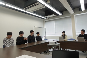 A. 弊社は創業時からのスタッフがほとんどなので、世代交代を確実にすること。そのために、他に真似できないものを作って、それを新しい柱にすることが今考えているビジョンです。その点では学生にも期待していますし、有給インターンシップも当面続けていきたいと思っています。その中から起業したい学生がいれば全力でバックアップします。今は医療系が中心ですが、分野にこだわるつもりはありません。また、情報を公開することも今後のテーマです。会社というのは情報を隠したがるのですが、そうするとその時点で発展が止まってしまいます。公開することで外の世界とつながり事業の規模を大きく広げていきたい。私が何年もかけて築いた「人の輪」を次の世代に繋ぎ、若い人がこの会社でしっかり食べていける状態を作る。それが私の考える事業の継続であり、世代交代です。(2026年2月取材) ※下記画像は2026年3月16日に開催された「インターシップの成果報告」の様子です