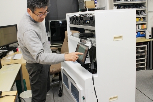 A. もともと八幡西区夕原の北九州市が管理する貸工場を拠点にしていましたが、5年間の入居期限を迎えるタイミングで北九州産業学術推進機構(FAIS)のコーディネーターから学研都市を紹介されました。共同研究していた早稲田大学が学研都市にありましたし、他にも共同研究していた企業が入居していたこともあり2012年に学研都市の情報技術高度化センターに入居しました。当時は薬局向けの「調剤過誤防止装置」や、「監査機能付お薬カレンダー自動作成分包機」の開発を進めていました。2年前に業務のパフォーマンスを上げようと広いオフィスのある事業化支援センターに移転し、現在は、画像処理技術に関する共同研究や有給インターンシップで、九州工業大学と連携しています。