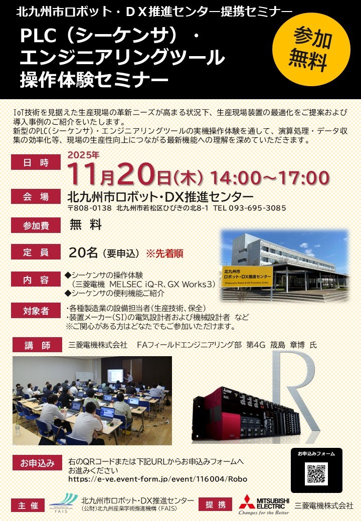 ※受付終了※『PLC(シーケンサ)・エンジニアリングツール操作体験セミナー 』開催〔11/20(木)14:00~〕